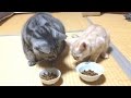 普段は怒る先住猫ですが、食事の時は何故か気弱になるようです。